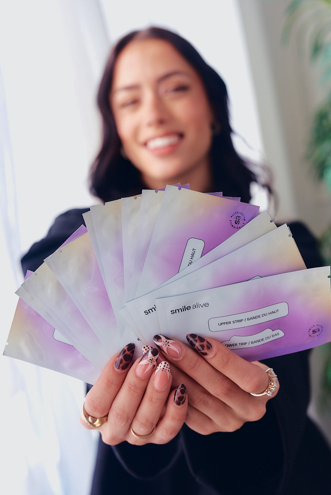 After completing your treatment with whitening strips, it is recommended to use our Smile Alive color corrector once or twice a day and to reduce your consumption of abrasives such as coffee, red wine and any other substances that can cause stains on your teeth.